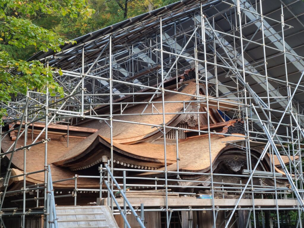 - 下山神社ご造営状況現在、造営中の下山神社では、素屋根の幌が外され、新しい屋根をご覧いただけるようになりました。雪が降り積もる季節… 続きを読む: 下山神社ご造営状況